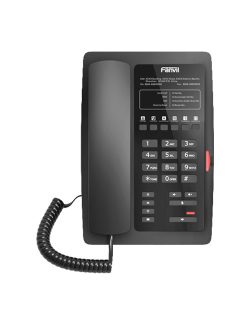 IP-телефон Fanvil H3 – створений спеціально для готелів, які висувають високі вимоги до телефонної інфраструктури та якості сервісу. Підтримує до 2-х SIP-акаунтів, живлення PoE, аудіо HD якості. На телефоні 10 програмних клавіш, операційна система на базі Vxworks, підтримка захищених протоколів: SIP over TLS та SRTP, сумісність з більшістю платформ для IP-телефонії: 3CX, Asterisk, Broadsoft, Elastix, Zycoo та ін.