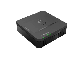 Модель Cisco SPA112 оказывается оптимальным выбором для компаний с существующей сетевой инфраструктурой. Порты телефонного адаптера расположены на задней панели. [...]