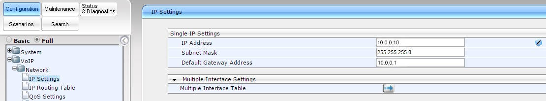 IP адрес шлюза AudioCodes: 10.0.0.10