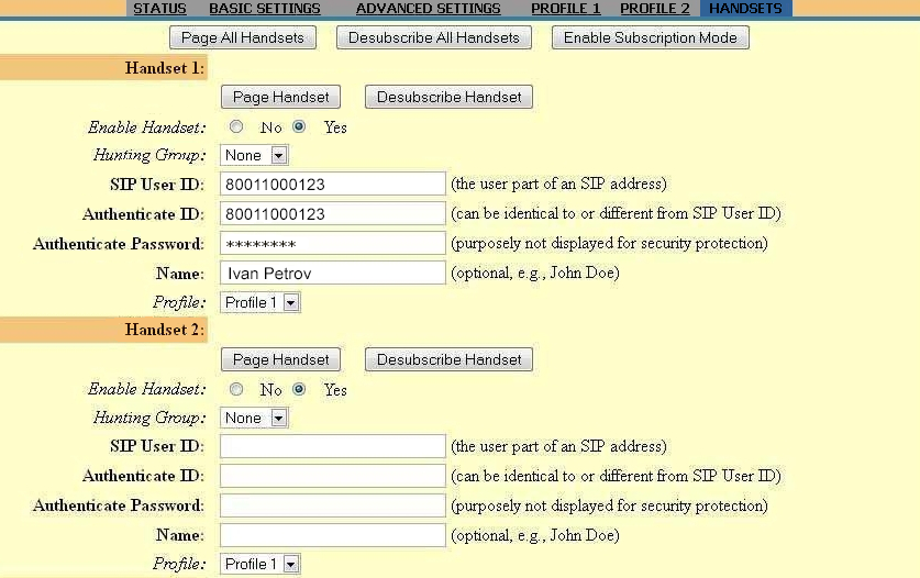 1. Войдите в вэб интерфейс телефона и откройте вкладку PROFILE 1:
