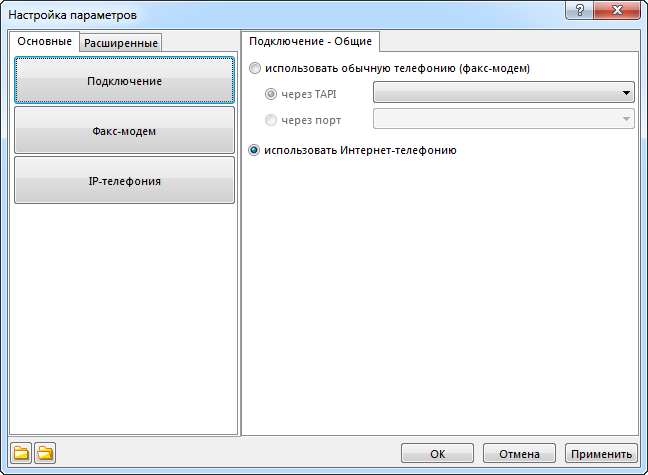1. В меню «Подключение» -> выберите «использовать Интернет телефонию»