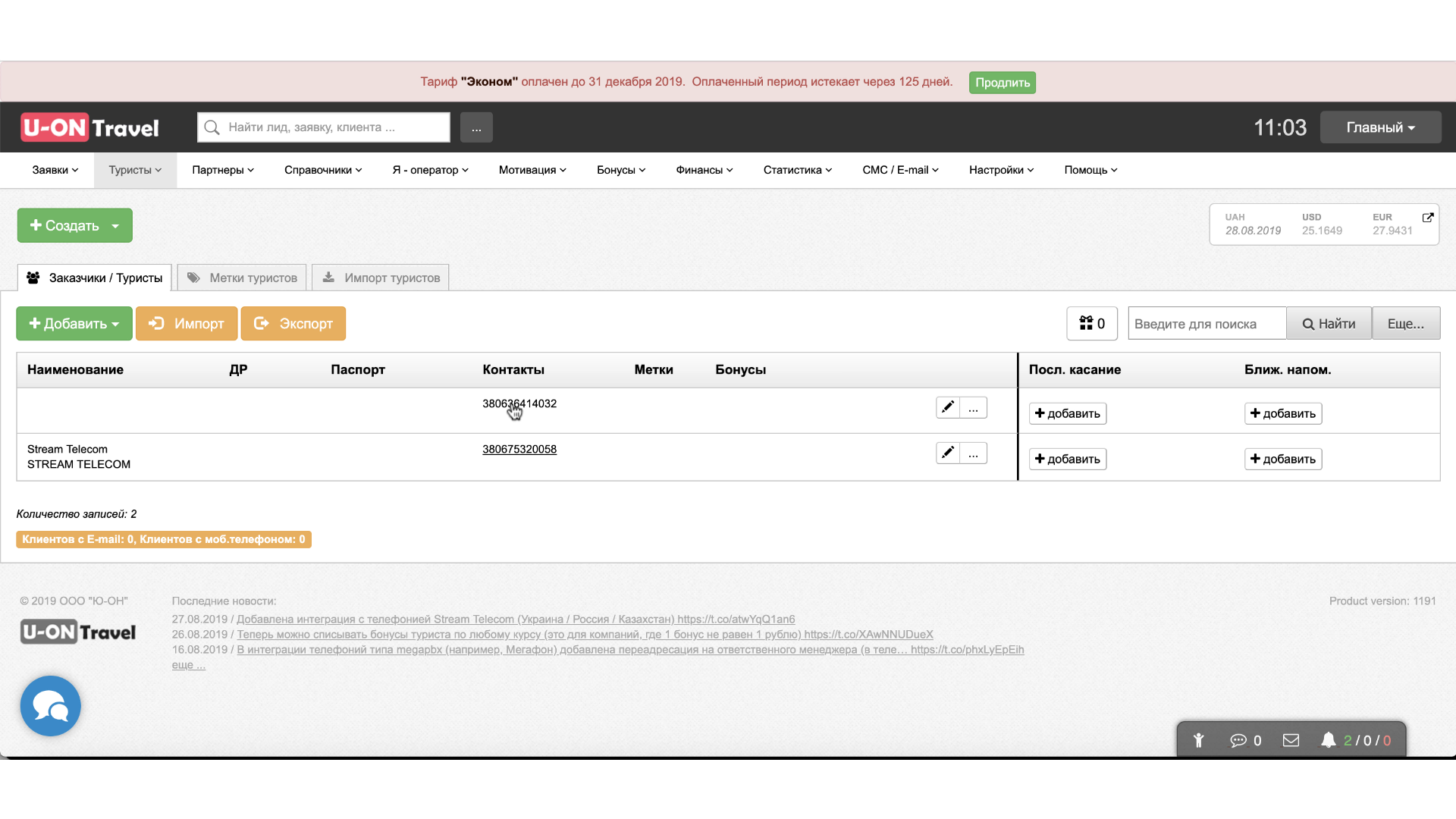 Обратите внимание, что интеграция позволяет вам использовать телефонию Stream Telecom напрямую из CRM U-ON Travel без использования кабинета телефонии. Это упрощает работу вам и вашим сотрудникам.