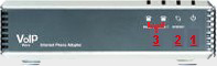1. POWER — Горит когда телефонный адаптер включен и присоединен к Internet. При отсутствии соединения мигает.