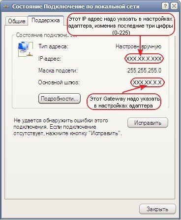 Static IP (IP адрес) : XXX.XX.X.XXX – с учетом изменения последних трех цифр (0-225).