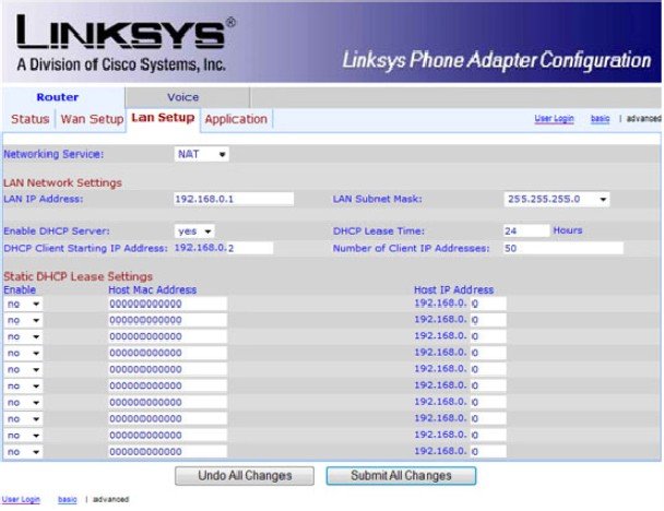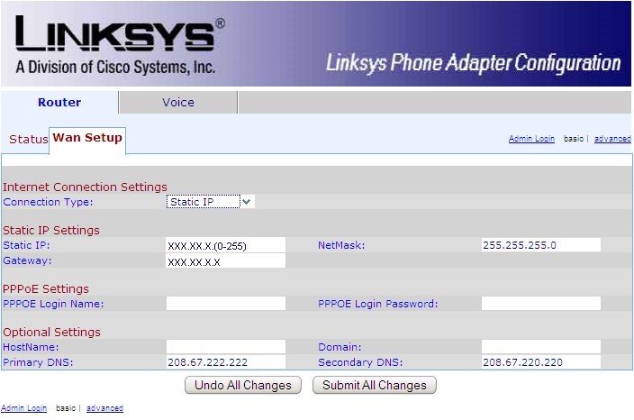 Настройка телефонного адаптера Linksys SPA2102 с помощью web-интерфейса: