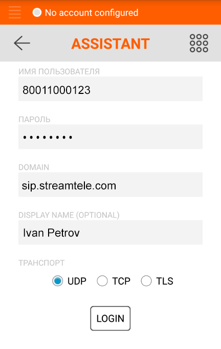 DISPLAY NAME: Ваш SIP номер (80011000123) або ім’я (Ivan Petrov)