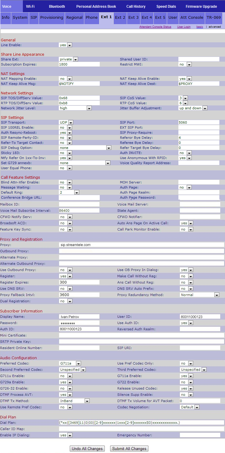 Display Name: Внутрішній SIP номер (наприклад,123) або ім’я користувача (Ivan Petrov)